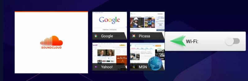 Standaard staat de widgetrij ingesteld op drie widgets. U kan meerdere instellen via Launcher settings-sections-widgets (zie lager)